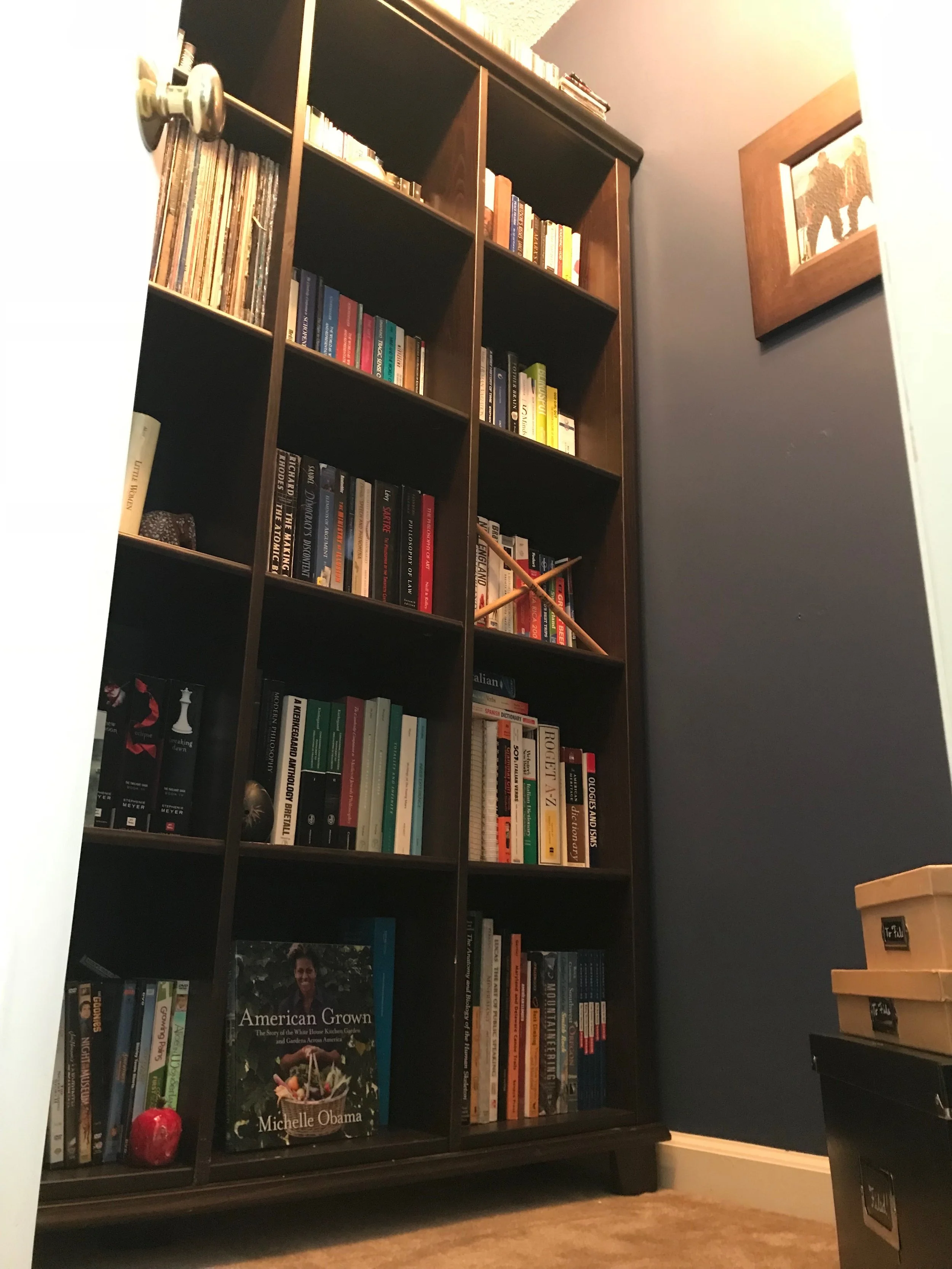 As I was sitting at the desk in our home office working on our master bedroom redesign, I was stumped by what we would do with our books once we removed the giant bookshelf that had taken root in the room. (Read more about our love/hate relationship with this bookshelf here.)